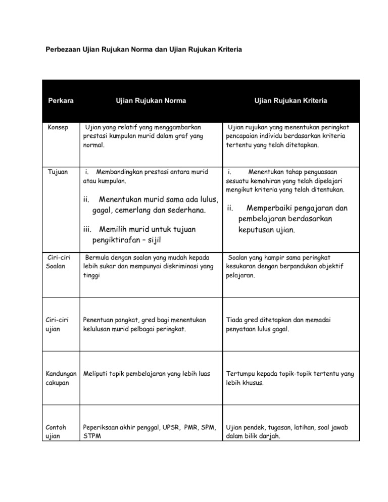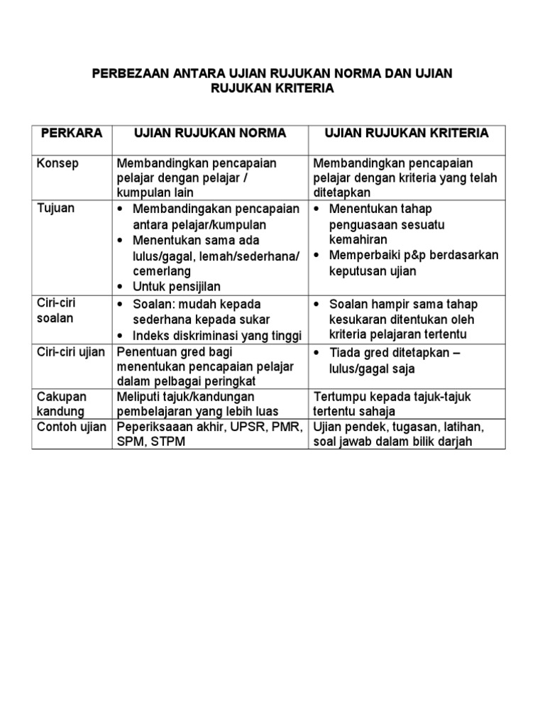 Perbezaan Antara Ujian Rujukan Norma Dan Ujian Rujukan Kriteria Pdf