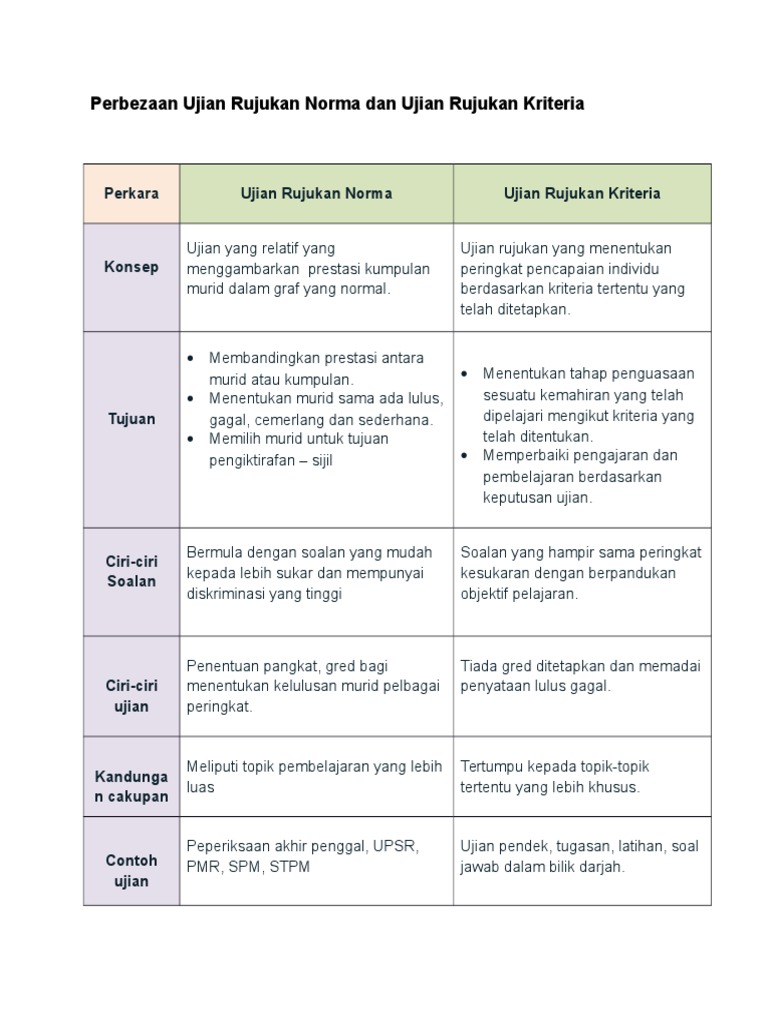 Perbezaan Ujian Rujukan Norma Dan Ujian Rujukan Kriteria Pdf